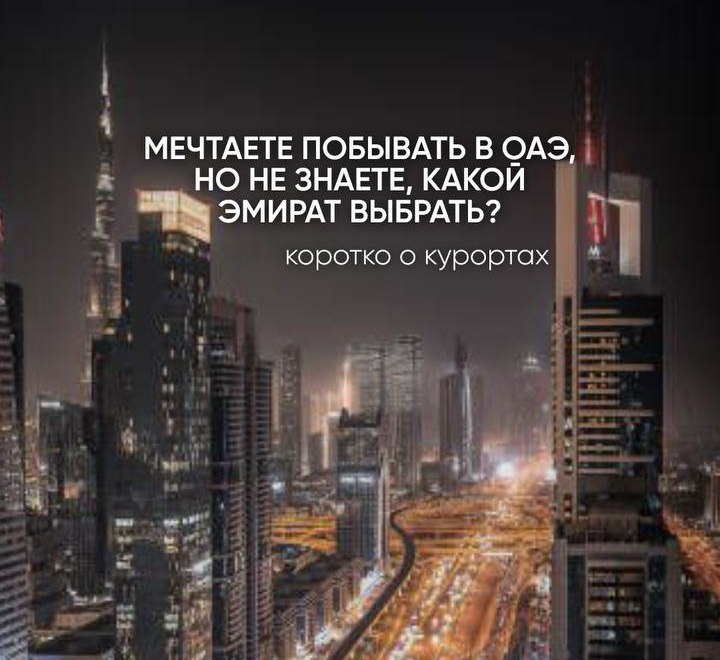 Объединённые Арабские Эмираты идеально подойдут всем: любителям активного отдыха, семейным туристам с детьми, молодожёнам и весёлым компаниям. В этой статье расскажем о главных курортах страны — сохраняйте и делитесь полезной информацией! Главный туристический эмират и символ современного технологического прогресса: здесь Бурдж-Халифа — самое высокое здание мира, искусственные острова, огромные торговые центры и разнообразные развлечения. Дубай стремится быть самым-самым, где возможное становится реальностью. 🔴 Пляжи — преимущественно песчаные с пологим входом в море, есть как частные, так и общественные. 🔴 Кому ехать — подойдет всем, особенно активным путешественникам и любителям ночной жизни. Столица и самый большой эмират, богатый зелёными зонами. Здесь находится знаменитая мечеть шейха Зайда — одна из крупнейших в мире, остров развлечений Яс, президентский дворец Каср Аль-Ватан и множество других достопримечательностей. 🔴 Пляжи — чистые, с мелким коралловым песком, пологий вход