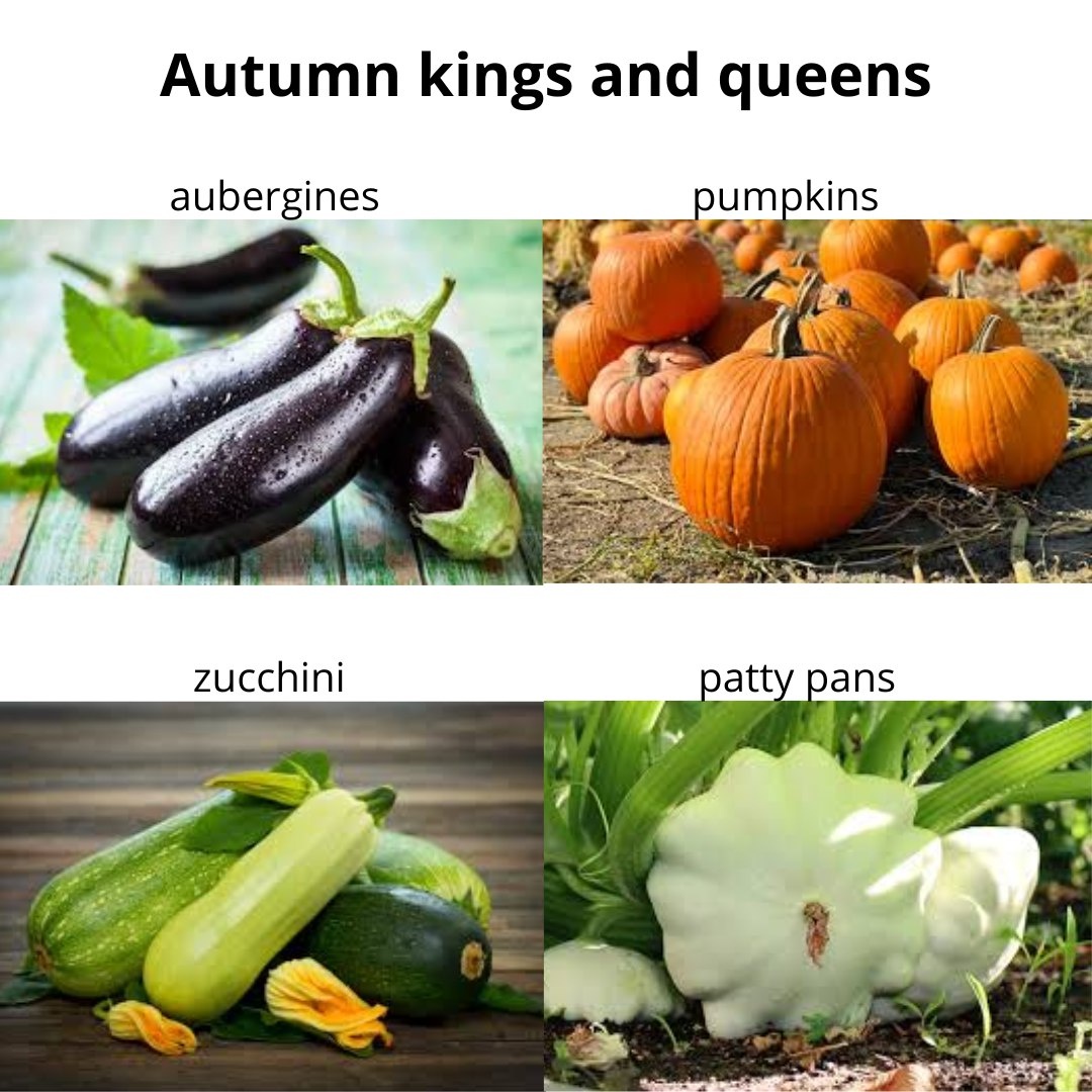 Autumn kings and queens 👑 aubergine /ˈəʊbəʒiːn/ zucchini /zuˈkiːni/ pumpkin /ˈpʌmpkɪn/ patty pan /ˈpæti ˌpæn/ Now, three of them are squash! Yep, the same word as for the game where you hit a rubber ball against a wall. Aubergine is also known as an eggplant 🤭 #vocabulary