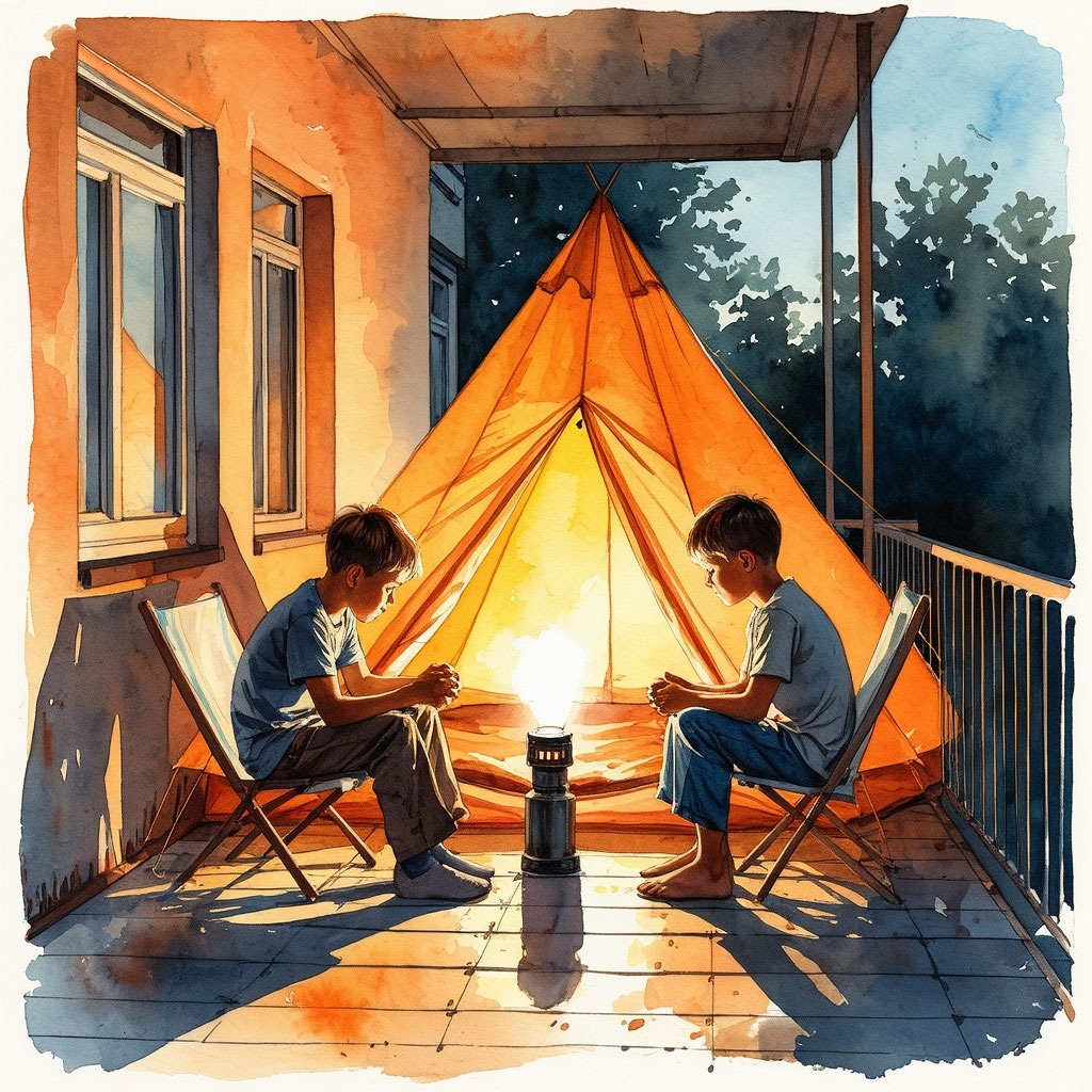 Началось всё с того, что к нам во двор, как метеор, ворвался Андрюха, который отдыхал на даче с родителями. Мы с ним не виделись целых две недели, а по летним меркам — это целая вечность, почти как от звонка до звонка в школе! Чтобы отметить нашу великую встречу, мы решили устроить ночёвку в палатке на балконе у меня дома. Мама разрешила, сказала: «Только не деритесь и не заливайте соседей снизу компотом!» Мы, конечно, обрадовались, натащили в палатку подушек, одеял, фонарик и стратегический запас печенья «К чаю», которое хрустело и крошилось прямо в спальник.