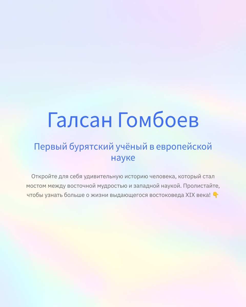 Галсан Гомбоев (1822–1863) — выдающийся бурятский востоковед, этнограф и переводчик. Он перевёл «Алтан-Тобчи», записал десятки бурятских сказаний, монгольских повестей и калмыцких легенд. Член Императорского археологического общества, преподаватель Петербургского университета. Его имя стоит рядом с Доржи Банзаровым — как одного из первых бурятских учёных в европейской науке. 👉 Читай больше о великих бурятах в нашем канале: https://t.me/universe_buryat