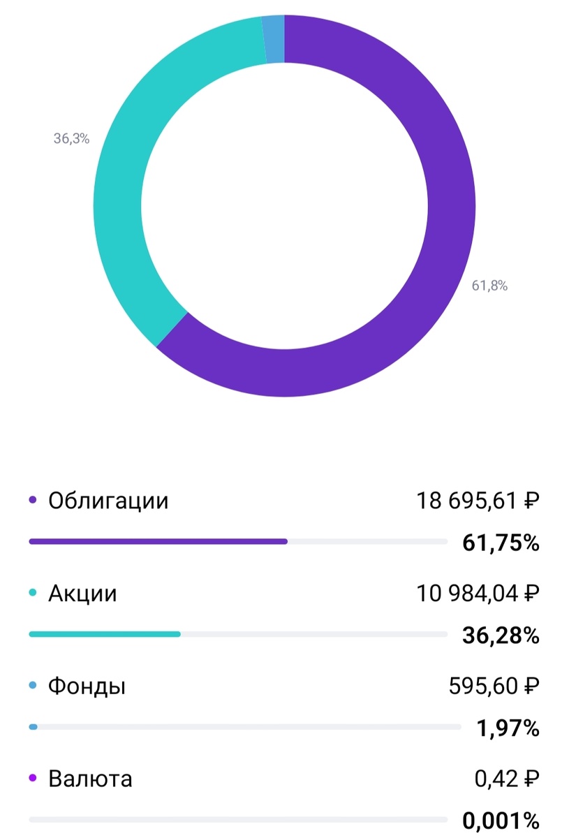 На прошедшей неделе ЦБ понизил ключевую ставку до 17%. Это значит, что пора пополнять десятилетий портфель. Напомню, что я собираю этот портфель для получения пассивного дохода через 10 лет. Мои покупки не являются ИИР, у каждого свои цели и свои взгляды на накопления. Я уже пополняла в сентябре портфель до заседания ЦБ, поэтому у меня сейчас есть возможность отправить на брокерский счет всего 5000 рублей. Денег немного, поэтому в этот раз я не занималась диверсификацией портфеля. Решила вместо этого поправить соотношение по типам активов. Основную часть покупок составили облигации. После предыдущих покупок у меня немного просела доля облигаций федерального займа. Поэтому я купила 4 лота длинных ОФЗ. Также докупила ещё 1 лот облигации ВТБ лизинг, которую покупала в прошлый раз. ОФЗ 26248 - куплено 4 шт. ВТБЛИЗ 1Р1 - куплено 1 шт. После покупки облигаций оставалось чуть больше 300 рублей, и я традиционно взяла акцию Сбербанка. Интересно, сколько получится собрать в портфеле Сб