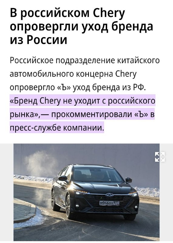 ⚡️ Chery остаётся в России — компания официально опровергла слухи о своём уходе