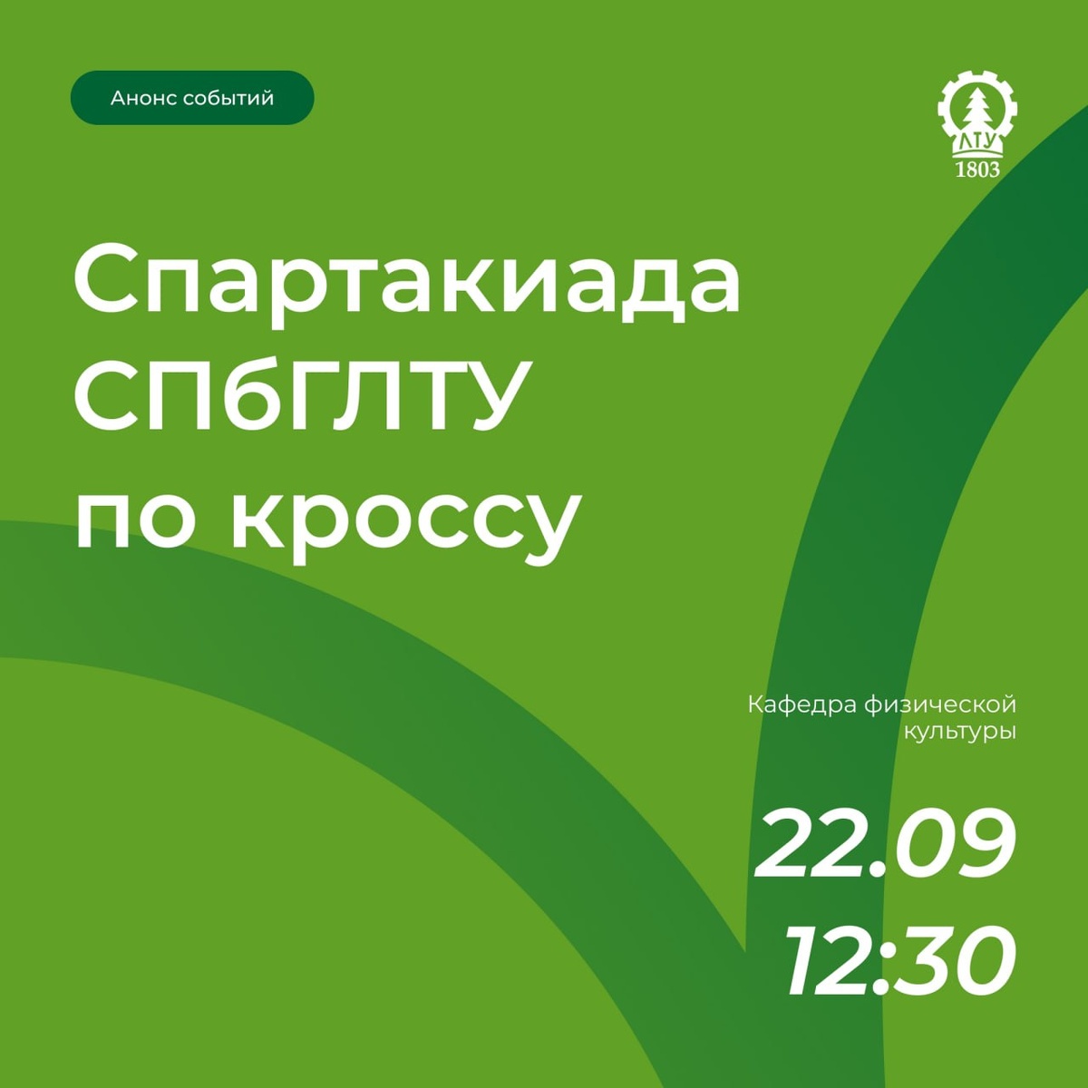 📌 22 сентября с 12:30 до 15:00 на кафедре физической культуры СПбГЛТУ пройдет Спартакиада по легкоатлетическому кроссу.