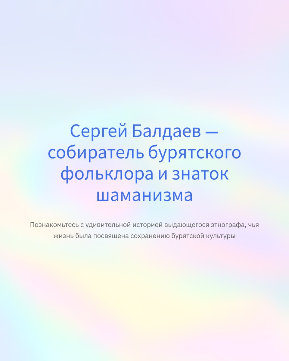 Сергей Балдаев (1889–1979) — выдающийся бурятский писатель, этнограф и собиратель фольклора. Автор пьес, исследователь шаманизма и традиционных верований бурят. Работал в Москве, Ленинграде и Улан-Удэ, сотрудничал с крупнейшими этнографами СССР. Его экспедиции собрали уникальный материал, который до сих пор служит основой для бурятоведения. 👉 Подписывайся на канал, чтобы узнать больше о великих бурятах: https://t.me/universe_buryat