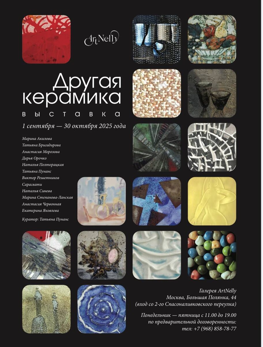 Осенний арт-сезон стартует ярко и необычно! Галерея ArtNelly распахнет свои двери для групповой выставки «Другая Керамика», которая доказывает: современная керамика – это не только уютная чашка или ваза, но и настоящее произведение искусства, способное украсить не только интерьер, но и душу! Забудьте о привычных рамках – перед вами керамика без границ! **Успейте увидеть это чудо своими глазами с 01 сентября по 30 октября 2025 года!**