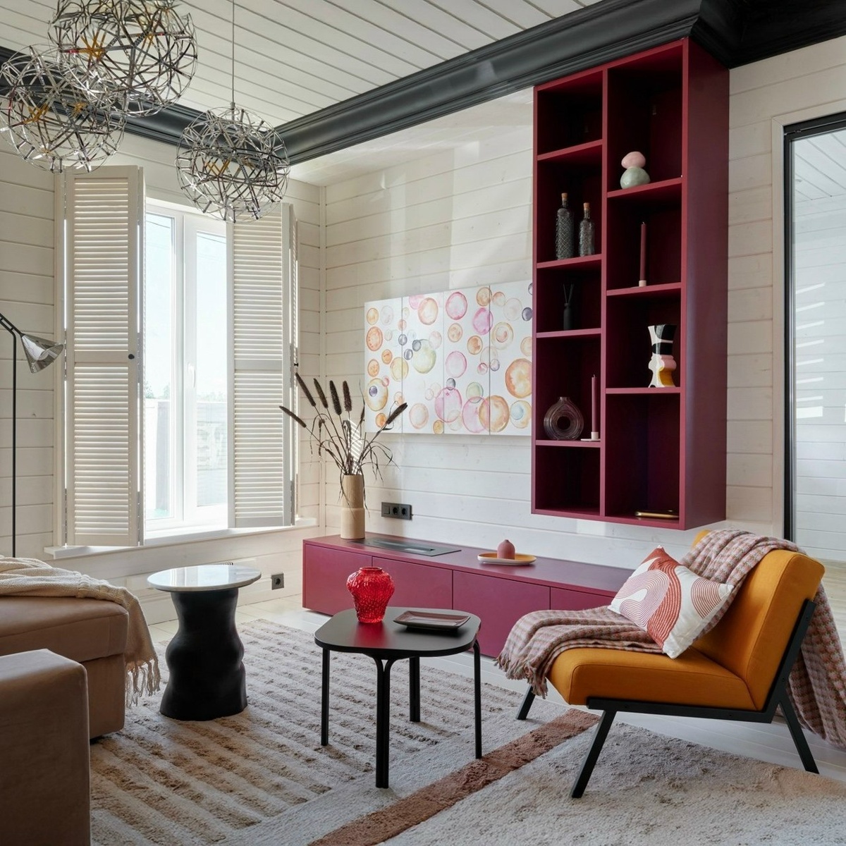«Дачный ответ»: вишенка на торте 🍒 Мебель Дятьково Design снова приняла участие в программе «Дачный ответ» на НТВ. Герои программы захотели обновить интерьер гостиной загородного дома, где любит собираться большая семья. Сменив привычную многим «вагонку» на более современное оформление, пространство преобразилось. В гостиной нашлось место и черно-белым полоскам «под зебру», и колор-блокингу, и хэндмейд-зеркалу в раме из детских игрушек. Мы изготовили для этого проекта композицию ТВ-зоны в эмали насыщенного ягодного оттенка в тон необычному арт-объекту – зеркальному «бублику» на стене. Дизайнер проекта сравнила ее с «вишенкой на торте». В съемках участвовала коллекция BAROLO: https://dyatkovo.ru/mebel-na-zakaz/kuhni/barolo/?utm_source=smm&utm_medium=organic&utm_campaign=vkontakte&utm_content=post. Мебель изготовлена на заказ по индивидуальным параметрам. Окрашивание: эмаль двусторонняя матовая RAL 3004. Хотите так же? Закажите дизайн-проект!