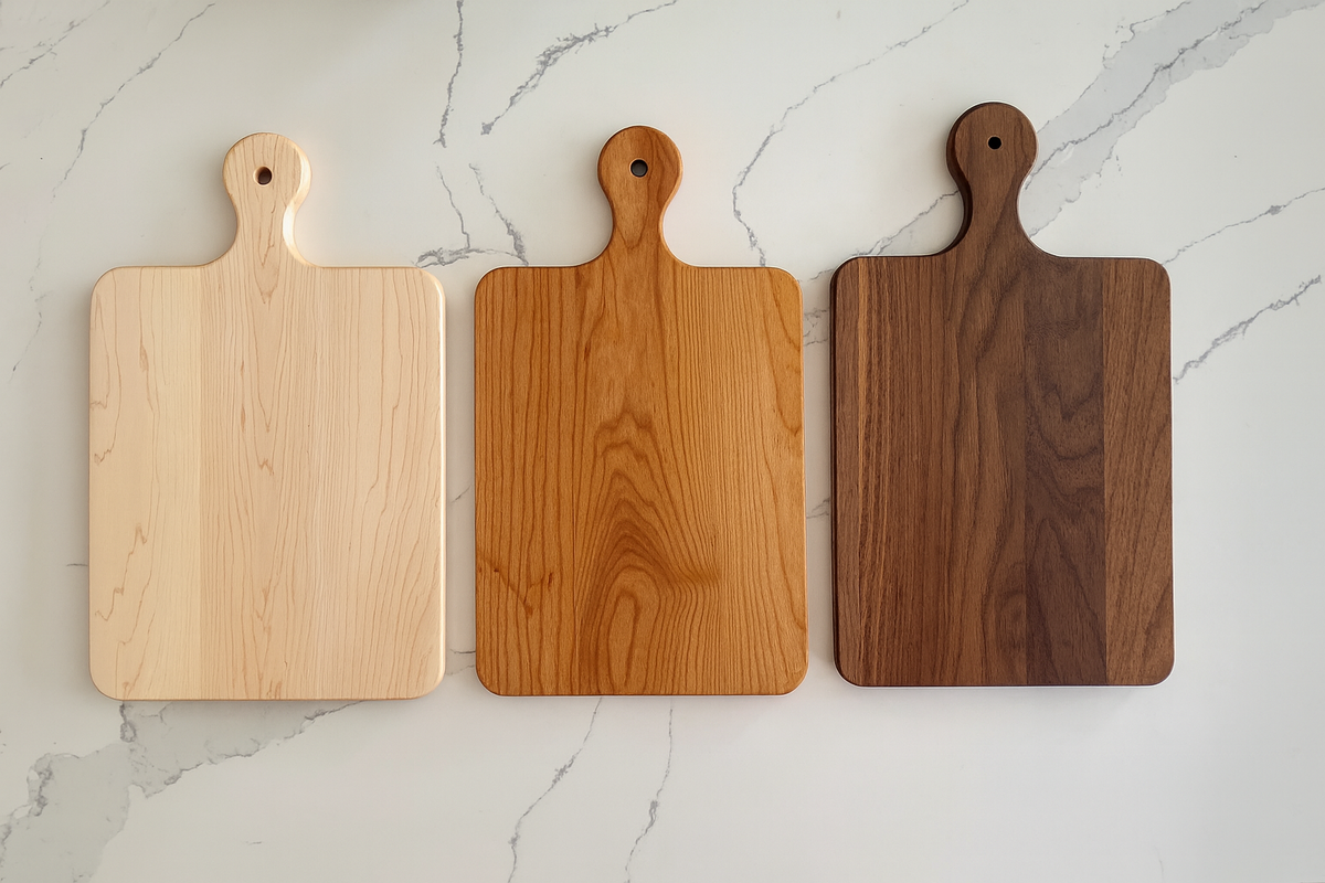 👉 Лучший выбор — доски из твёрдых пород: дуб, бук, акация. Они плотные, меньше царапаются и не впитывают так сильно запахи.