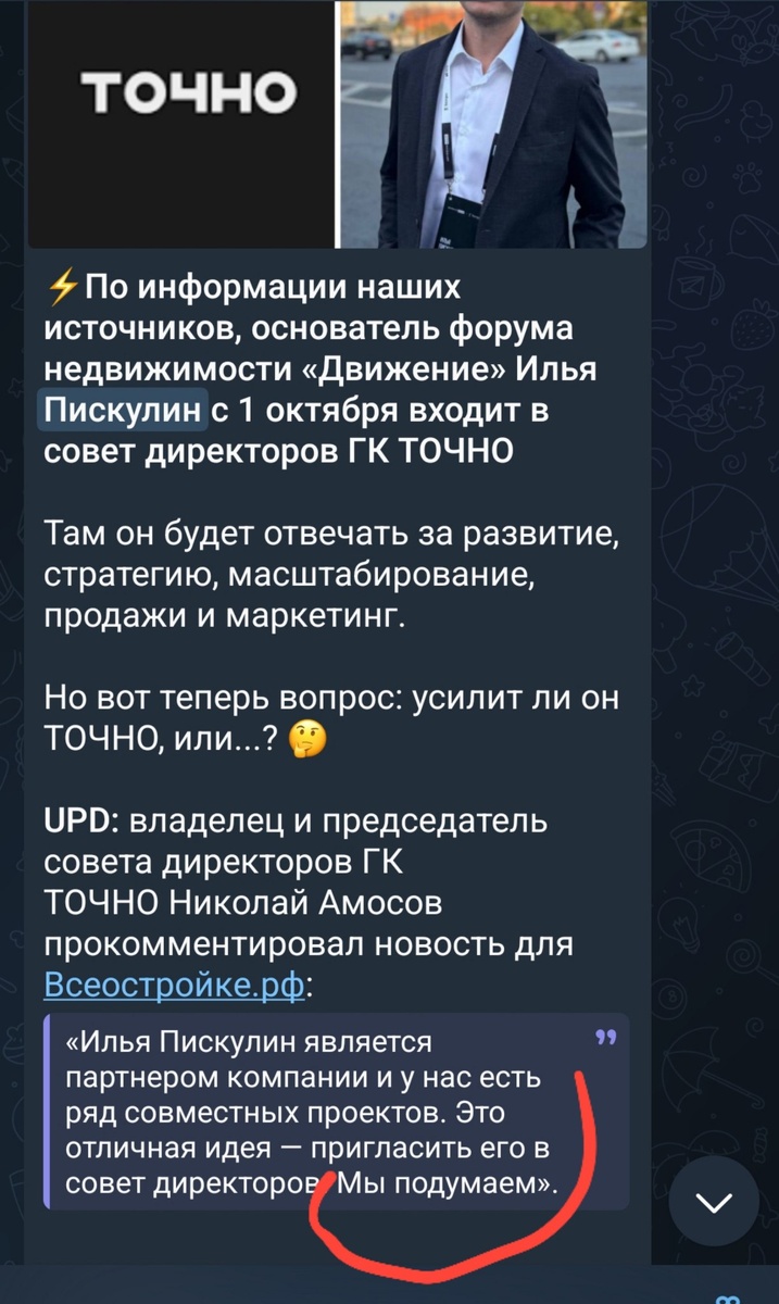 В ответ на пост Кадровые новости из всех щелей. Кризис лучшее время для кадровой миграции. Но тут интересна подача. Канал пишет о переходе Пискулина в Точно, а владелец Точно комментирует, - о отличная идея, мы подумаем. Это так работает? Если кадровые назначения проходят через телеграм каналы, то готов распускать слухи про ваши назначения за комиссию. Это уже аутстаффинг ?