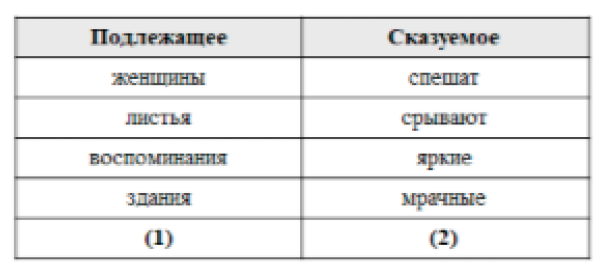 Один ученик решил выписывать из текста в таблицу грамматические основы предложений, но только такие, в которых оба главных члена предложения стоят в форме множественного числа. В результате у него получилась такая таблица.
