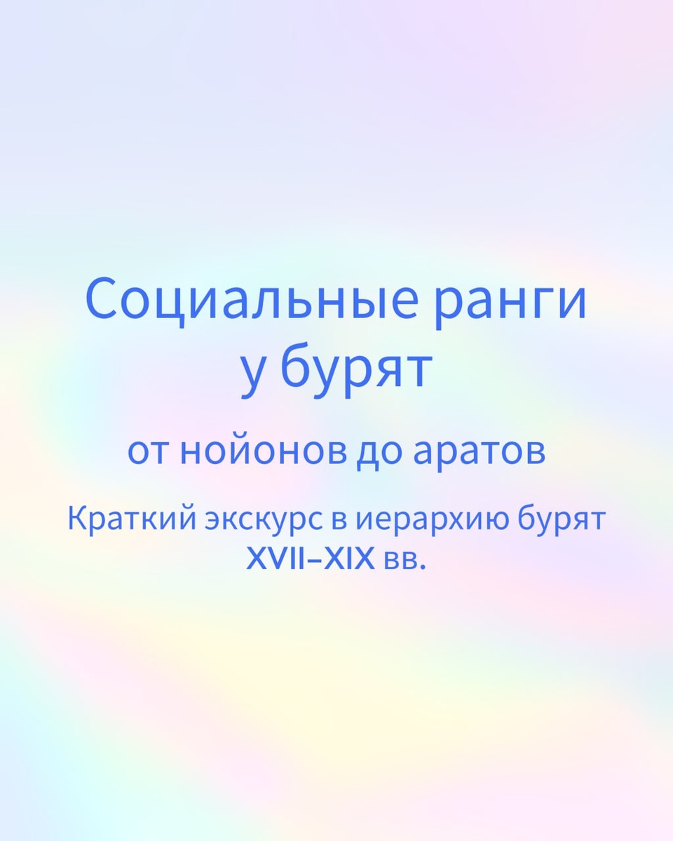 Социальные ранги у бурят — это сложная система титулов и должностей, унаследованная от монгольской традиции. Зайсаны, нойоны, тайши, князцы и другие звания отражали как военную, так и административную иерархию. Они определяли место рода в обществе, права на землю и участие в советах знати. Изучение этих рангов помогает понять устройство бурятского общества, его связи с Монгольской империей и Цинской династией. Подробнее о бурятской истории и культуре читайте в нашем канале 👉 https://t.me/universe_buryat