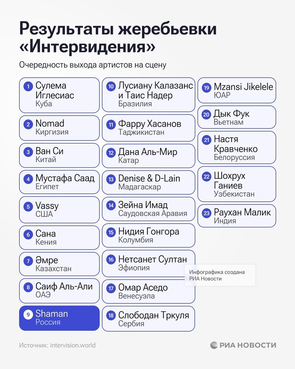 Россию на конкурсе представит Shaman. Когда он выйдет на сцену – смотрите в нашей инфографике.