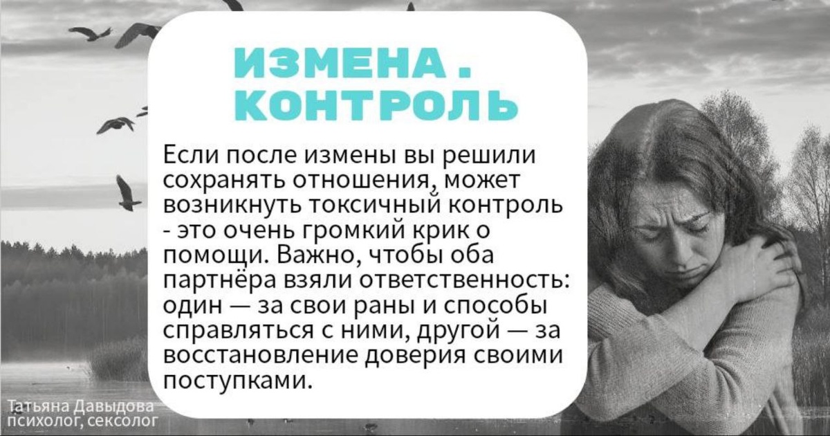 К сожалению, токсичный контроль не лечит рану. Но❗️Здесь важно понять и отметить следующее. В ситуации измены снижение контроля – работа двух людей!