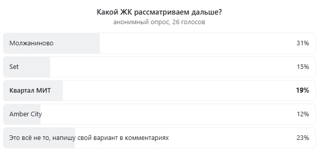 Друзья, продолжаем обзор новостроек? В последнем голосовании получились такие результаты: До этого были обзоры ЖК "Москворечье", "Люблинский парк" и "Саларьево Парк", сегодня не ПИК, а проект "Самолета" - Молжаниново. Распроданность менее 70%, сдача - IV квартал 2025 года. Достаточно высокий показатель, но сильно ниже, чем у проектов ПИК, которые мы рассматривали. Комплекс расположен в Молжаниновском районе САО Москвы. Из транспорта - станция "Новоподрезково" МЦД-3 прямо у ЖК. 30 минут до севера Москвы, 45 - до центра. Главные конкуренты "Молжаниново" 2 проекта от ФСК (ДСК-1) - сданный в прошлом году ЖК "1-ый Ленинградский" и строящийся "1-ый Шереметьевский" (правда, последний уже не Москва, а подмосковные Химки. Самый бюджетный вариант, который нашёл от застройщика - студия 20,2 кв.м. на 1-ом этаже за 7,2 млн 358 000 за кв.м. Есть, например, такой вариант Похожая студия чуть большей площади в уже сданном доме от собственника за 7,35 млн. Цена за кв.м. - 334 000. В случае использова