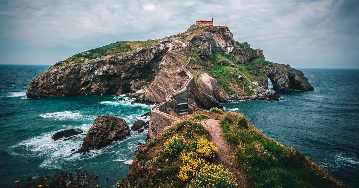 Островок на побережье Бискайского залива, относящийся к муниципалитету Бермео, Страна Басков (Испания). Остров соединен с материком мостом, который переходит в извилистую лестницу, насчитывающую 241 ступень. Единственным строением на острове является небольшая часовня Doniene Gaztelugatxeko (Сан-Хуан-де-Гастелугаче), возведенная в честь Иоанна Крестителя. Археологические находки и захоронения в этих местах свидетельствуют о том, что часовня была возведена ещё в 10 веке. Слово Гастелугаче происходит от баскского gaztelu что означает замок и aitz - скала, образуя "скальный замок". Название остров получил благодаря природным каменным аркам, издалека напоминающим рукотворные колонны. Небольшой храм был построен в 10 веке. Как предполагают ученые, строителями часовни были тамплиеры. При археологических раскопках на территории острова были найдены средневековые погребения, датируемые 9 и 12 веками. Помимо религиозного значения, остров Гастелугаче является важным стратегическ