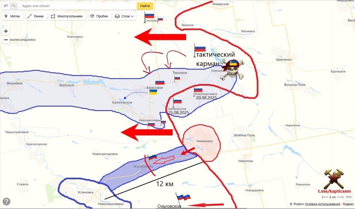 В ответ на пост Стык Запорожского и Днепропетровского фронтов. Вбивание здоровенного гвоздя Примерно 6 км укрепленной оборонительной полосы Запорожского фронта ВС РФ забрали у ВСУ и завязали бои в Новоивановке. Чуть севернее, противник практически оставил Березовое. схемы и карты