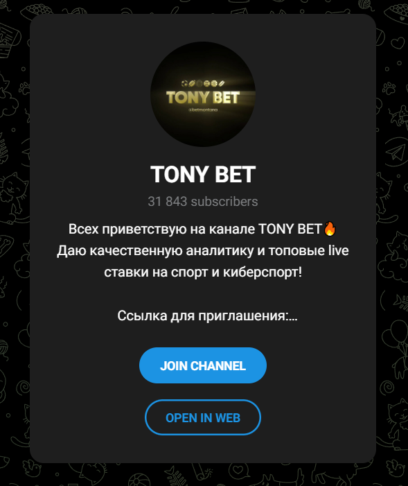 Проект t me/+A_YKOiqEhRVkYWJi активно продвигается как каппер-аналитик, который предлагает бесплатные и платные прогнозы на спортивные события. Главный запрос, который чаще всего всплывает: TONY BET отзывы — именно он показывает, чего ждать, если вы решитесь вложиться в обещания. 💡 ОБЕЩАНИЯ, КОТОРЫЕ ЗАХВАТЫВАЮТ ВНИМАНИЕ TONY BET предлагает: Всё это выглядит заманчиво: вроде как берёшь минимум, а получаешь максимум. Но часто за “бесплатно” стоят условия, которые не сразу очевидны, и за “платные сигналы” — ожидания, которые иногда не оправдываются. ⚠️ ВАЖНО! Проект, который прошел проверку.