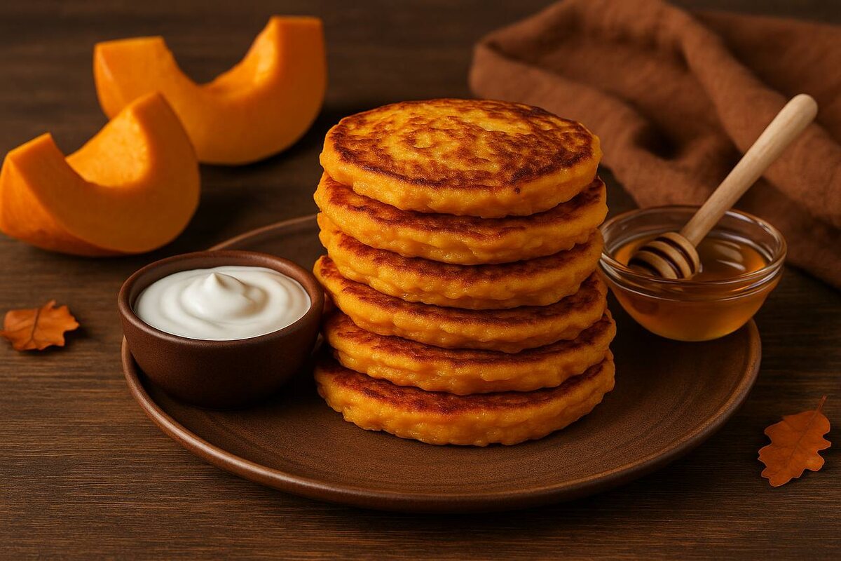Осенний завтрак без спешки: тыквенные оладьи со сметаной