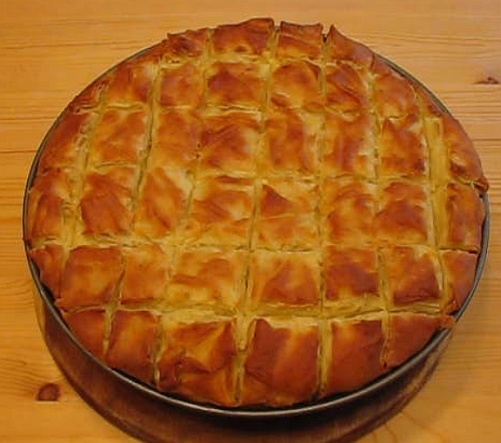 Верх ачмы смазываем растопленным сливочным маслом, накрываем и отправляем в холодильник минут на 30-40. При необходимости в таком виде ачма может простоять в холодильнике и сутки, что очень удобно, поскольку можно собрать заранее, а выпечь непосредственно перед подачей. Перед посадкой в печь ачму надрезаем, еще раз смазываем растопленным сливочным маслом, при желании проливаем маслом и надрезы (я не проливаю, поскольку и так калорийность зашкаливает).