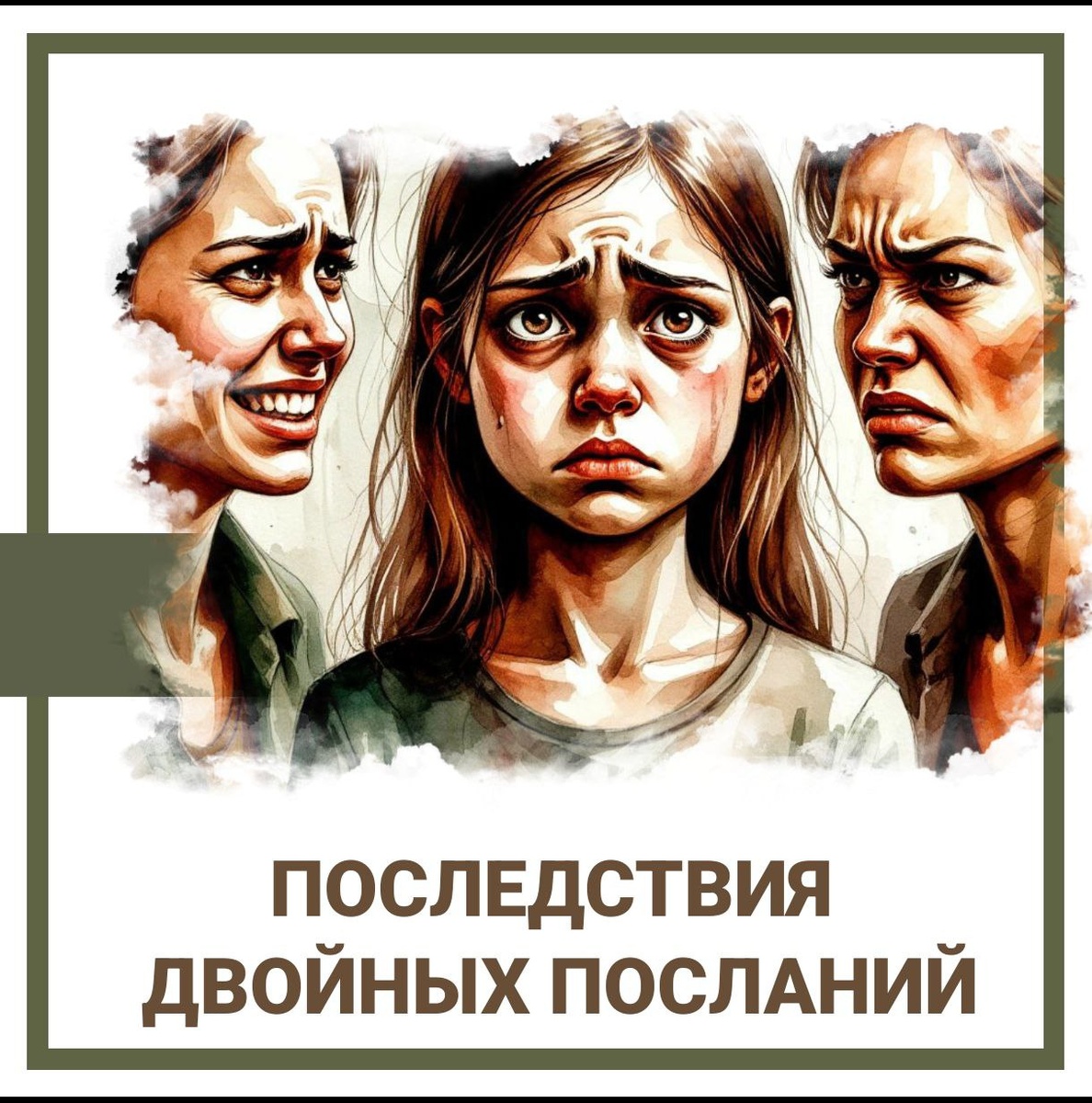 Двойное послание. Почему мы теряем опору под ногами Люди, выросшие в атмосфере двойных посланий, часто во взрослом возрасте чувствуют: · Неуверенность в себе · Неумение принимать решения, опираясь на себя · Недоверие к своей интуиции и миру в целом Что такое двойное послание (double bind)? Это когда на вербальном уровне говорят одно, а на невербальном (тон, язык тела, действия) — совершенно другое. Но главная ловушка — это невозможность выйти из ситуации и прямо обсудить это противоречие. Классический пример: «Обними меня... но не сейчас» 1. Вербальный уровень: Мать говорит: «Иди сюда, я тебя люблю. Дай я тебя обниму». 2. Невербальный уровень: Когда ребёнок приближается, она напрягается, её объятие формальное и холодное. Её тело кричит: «Отойди, ты мне неприятен». 3. Невозможность выйти и обсудить: Если ребёнок спросит: «Мама, тебе неприятно?», последует обиженный ответ: «Что ты такое говоришь! Ты неблагодарный!». Конфликт отрицается, а попытка его обсудить — наказуема. Результа