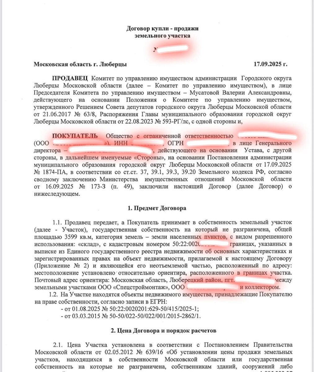 Склад в Люберцах - выкуп участка В продолжении ввода объекта в эксплуатацию сопроводили застройщика в выкупе земельного участка у Администрации. На основании 10% застроенной территории подготовили документы для выкупа. Результат: Получено положительное решение в виде подготовленного договора купли-продажи. Застройщику необходимо только подписать договор и произвести оплату. По всем вопросам создания коммерческой недвижимости обращайтесь в личные сообщения @petrovdevelopment