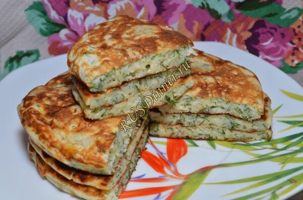 Сырные лепешки с зеленью Ингредиенты: Кефир - 300 мл мл. (комнатной температуры) Яйцо - 1 шт. (комнатной температуры) Сыр - 150 гр гр. Соль - 6 гр гр. (2/3 ч.л.) Сода пищевая - 6 гр гр. (1/2 ч.л.) Сахар - 10 гр. (1 ч.л.) Мука - 150 гр гр. Укроп - 1 пуч. (можно взять любую зелень) Источник: https://rusdinner.ru/page/syrnye-lepeshki-s-zelenyu