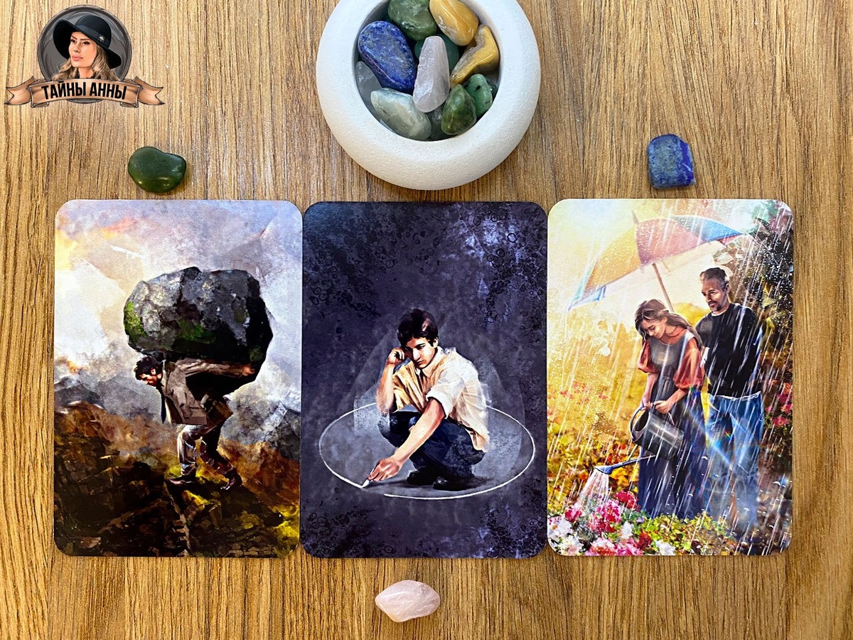 🌙 Я нахожу счастье в радости близких... На сегодня всё! Завтра будет новый день и новые расклады! А пока — метафорические карты этого вечера на сон грядущий. Подумайте, о том, что они вам навевают... Аффирмация на вечер и утро: «Я принимаю свою роль в жизни близких, наполняю каждое своё действие любовью и нахожу счастье в их радости...». ◈ Тяжёлый груз обязанностей. Огромный валун, который несёт персонаж, символизирует некие долги перед семьёй, коллегами, обществом. Знакомое многим ощущение, когда ожидания окружающих становятся непосильной ношей. И чем дольше вы несёте этот груз, тем сильнее устают плечи, тем меньше остаётся сил на обычную жизнь. И эта карта напоминает о необходимости пересмотреть своё отношение к долгу, ведь груз становится невыносимо тяжёлым именно тогда, когда мы забываем о смысле того, что делаем... ◈ Спрятаться от всех. Когда силы на исходе, хочется сбежать, закрыться в своей раковине, никого не видеть и не слышать! Помните это детское желание построить шалаш