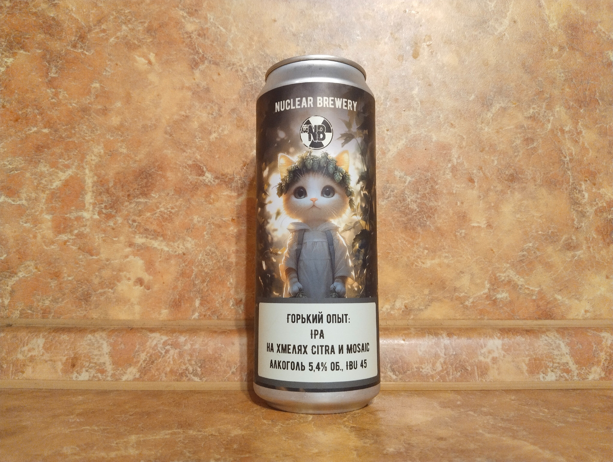 Некоторое время назад, я твёрдо решил - не покупать продукцию пивоварни Nuclear Brewery с ИИ сгенерированными котиками на этикетке, ибо пиво, из данной серии, в лучшем случае, неплохое, а цена, мягко говоря, не радует. Но зарекалась ворона г..но не клевать, потому сегодня в обзоре американская Ирка на двух (из трёх) моих любимых хмелях - Горький опыт: IPA на хмелях Citra и Mosaic. Котик на этикетке баночки милый, но не настоящий, зато у меня дома трое котятов самых реальных и безумно красивых: Баюша, или Баюн - младший, самый крупный: Локи - рыжий хулиган, средний сын: Киса Бастет - хозяйка всего и вся, кошачий матриарх: Хороши - же?)) Опыт, который мы хотим предложить в этот раз – употребление эля, охмеленного классическим сочетанием хмелей Citra и Mosaic. Citra может давать напитку грейпфрутовый, лаймовый ароматы, ароматы личи, крыжовника. Mosaic - тропический, черничный и цветочный ароматы. Сможешь ли ты найти их все? Алкашка/плотность - 5.4%/15%. IBU - 45. Стиль - AIPA. Объём