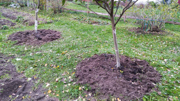 Лью раствор не под ствол, а по проекции кроны, отступая от ствола метр-полтора. Именно там находятся активные корни. После подкормки мульчирую торфом или перегноем слоем 3-4 сантиметра.