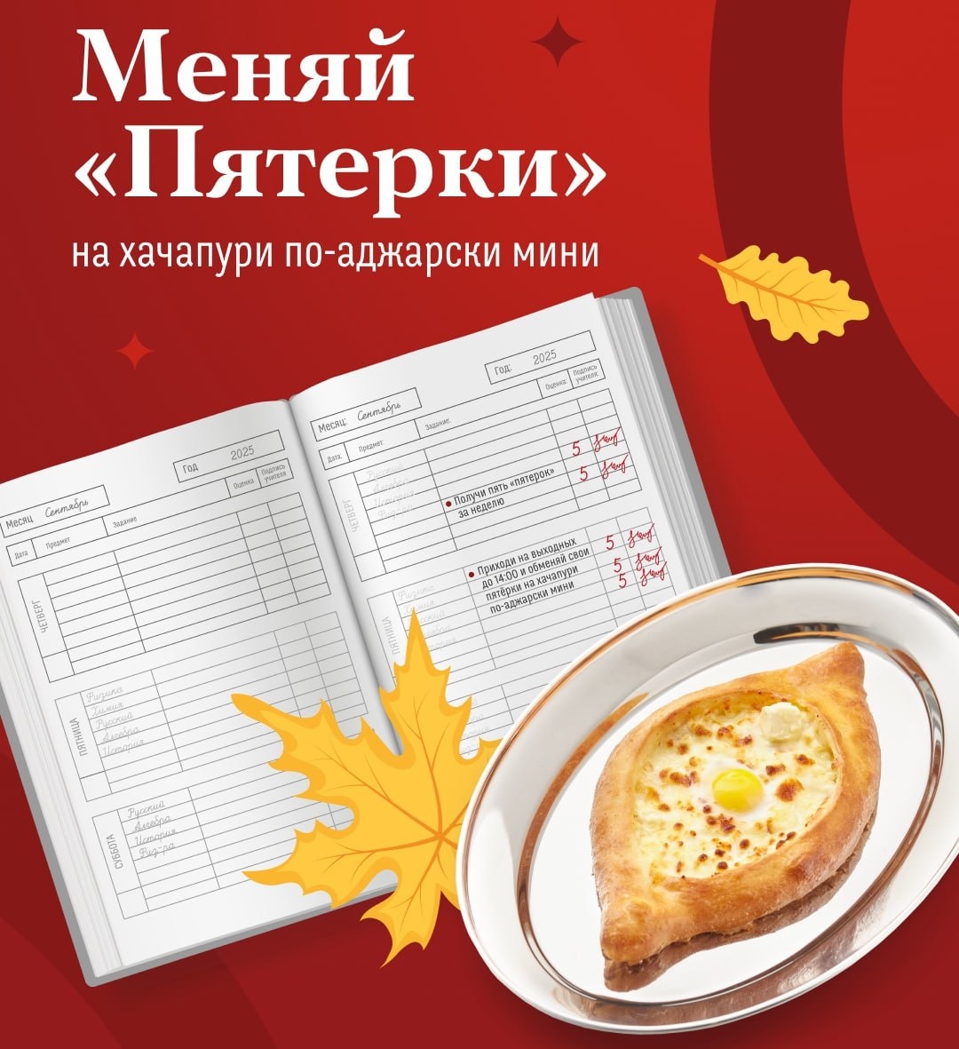 Меняем пятерки на вкусный хачапури в ресторанах «Старик Хинкалыч» 🍽 🗓 20 сентября — 5 октября 📍 все рестораны сети 💵 Бесплатно В хинкальных стартует акция для всех отличников: нужно получить как минимум 5 «пятерок» в дневник в течение недели, прийти в один из ресторанов на выходных и показать свои оценки официанту. В подарок ребёнок получит мини-хачапури. Обменять пятерки на мини-хачапури по-аджарски можно до 14:00 в следующие дни: 20, 21, 27, 28 сентября; 4, 5 октября. #локация Подпишись на Куда пойти в Питере с детьми