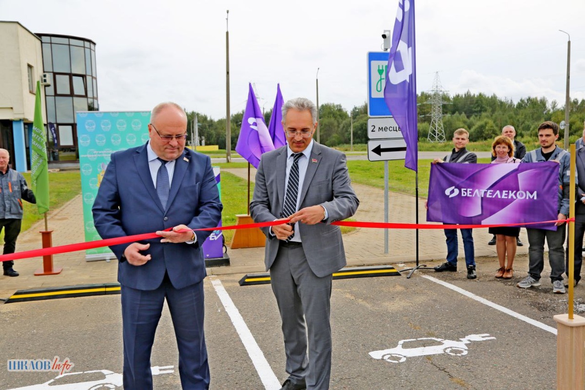 ⚡️В рамках Недели мобильности и празднования Дня народного единства в Шклове открыли станцию зарядки электромобилей. ✅В церемонии открытия приняли участие председатель Могилевского областного комитета природных ресурсов и охраны окружающей среды Константин Тепляков и начальник Могилевского радиотелевизионного узла филиала радиотелевидения РУП «Белтелеком» Александр Слешинский. – Количество электротранспорта с каждым годом увеличивается. Сегодня в Могилевской области насчитывается порядка 2500 электромобилей. И развитие сети зарядных станций – одно из направлений развития инфраструктуры для электрокаров. Примечательно, что станция открывается на Неделе мобильности, – отметил Константин Ильич на открытии. ✅Автомобильная электрозарядная станция сети Evika!, принадлежащей РУП «Белтелеком», расположена на улице Заводской, на стоянке завода газетной бумаги.