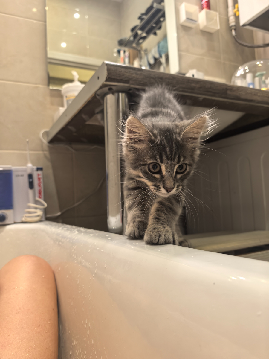 Кот наш растет не по дням, а по часам. Реально кажется, что такими темпами, несмотря на некоторые проблемы с ЖКТ - он доберет до размера мейнкуна. Прибавка в весе за первую неделю 250 грамм, хвост распушается, морда добреет вширь. Почти на глазах.