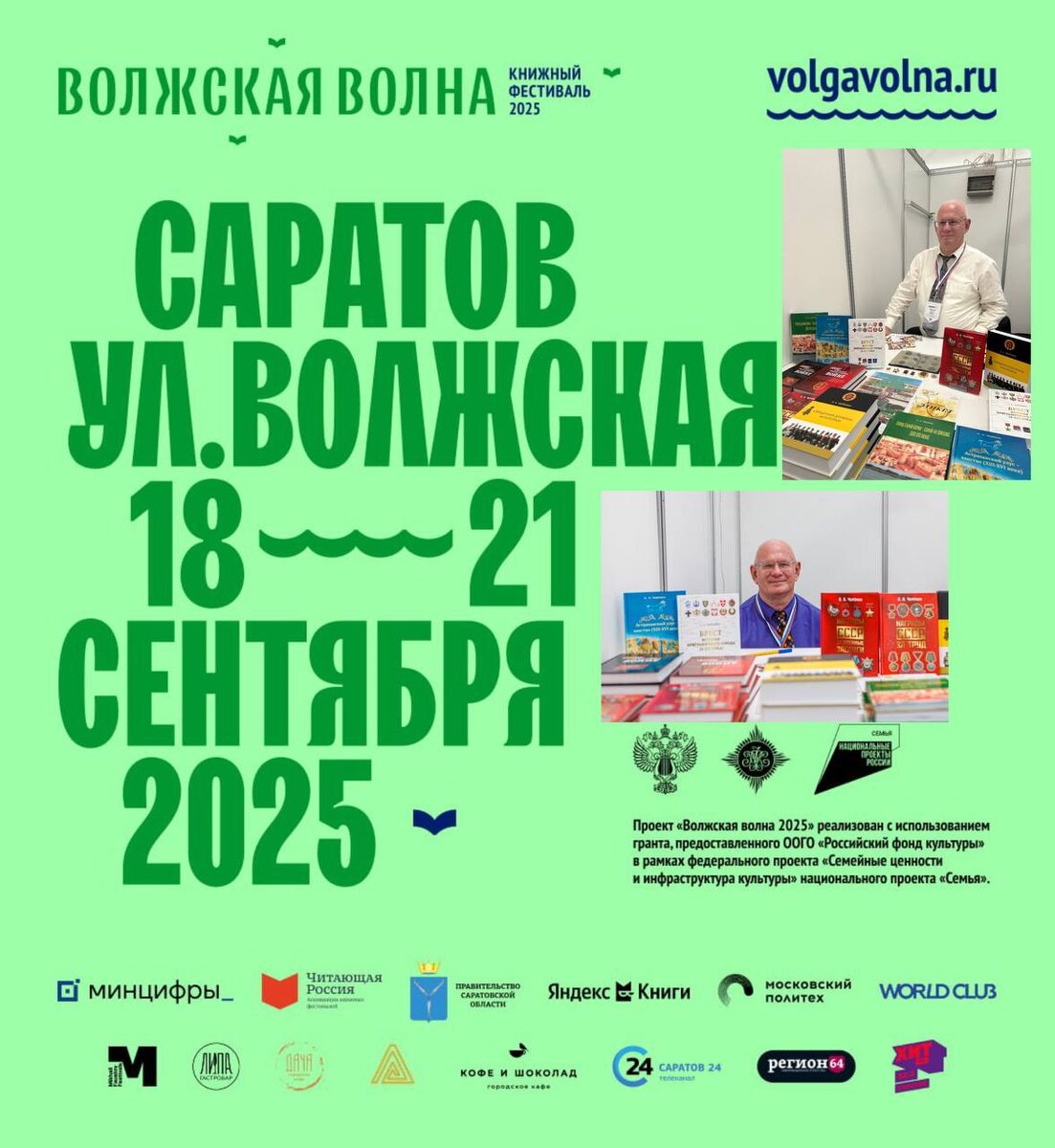 Саратов, дорогие друзья! Приглашаю вас посетить мой стенд на книжном фестивале «Волжская Волна» С 18 по 21 сентября. Время работы с 10:00 до 20:00 ул. Волжская! Приходите,буду рад встрече с каждым читателем моих книг! Автограф в подарок!