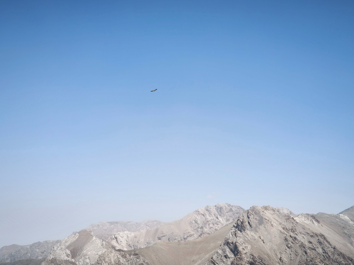 И если что - мы уже стоим на 3450, палатки на уровне 2650, и всё равно он над нами высоко... Сорри, приближение на телефон, но красавчик же! Порыскала - похоже на белоголового сипа (из стервятников)