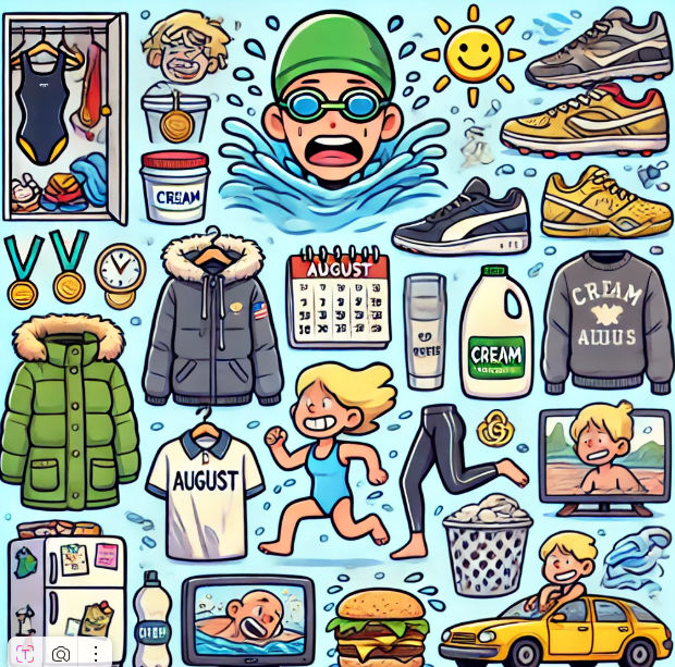 Там висят сетки, старые купальники и десятки шапочек. Запах хлорки. Куча медалек и ленточек, которые когда-то были сокровищем, а теперь — просто «тяжелый хлам». Фотоальбом семьи: папа с челкой, мама с локонами, а у детей — «хлорный блонд». У нормальных людей дома один крем. У пловцов — по банке в каждой комнате, плюс ещё тюбик в машине. У кого-то передаётся фамильное кольцо. У пловцов — старый тёплый парка, который пахнет рекордами и мокрым полотенцем. Звуки ада. Только пловцы могут добровольно вставать до петухов и считать это нормой. Толпы маек с названиями городов, где ты даже не был — но там плавал. -