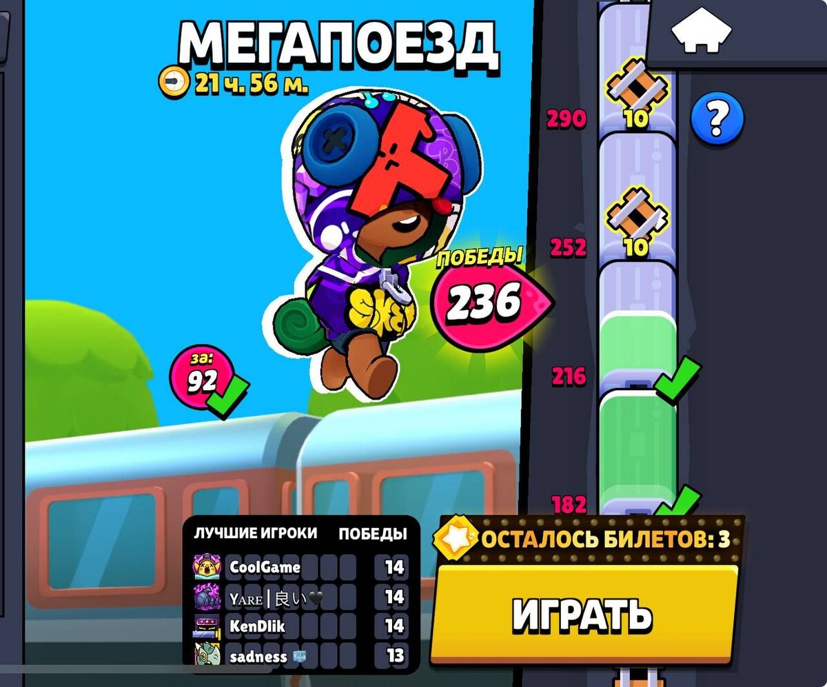 В Brawl Stars подходит к концу вторая неделя коллаборации. У игроков остается меньше суток, чтобы бросить вызов Мегапоезду и получить заслуженные награды. 🚂💥 Для тех, кто успел накопить билеты, сейчас самое время собрать команду и пройти максимальное количество рельс. Не упустите шанс заработать эксклюзивные призы и укрепить свои позиции в игре. Напоминаем, что коллаборации в Brawl Stars всегда приносят уникальные события и возможности для игроков. Участие в таких ивентах позволяет не только получить редкие скины и улучшения, но и насладиться новым игровым опытом. Не пропустите финальные часы события и покажите всем, на что способен ваш отряд! 🎮✨ 🔗 Больше новостей смотрите на News.Mentup