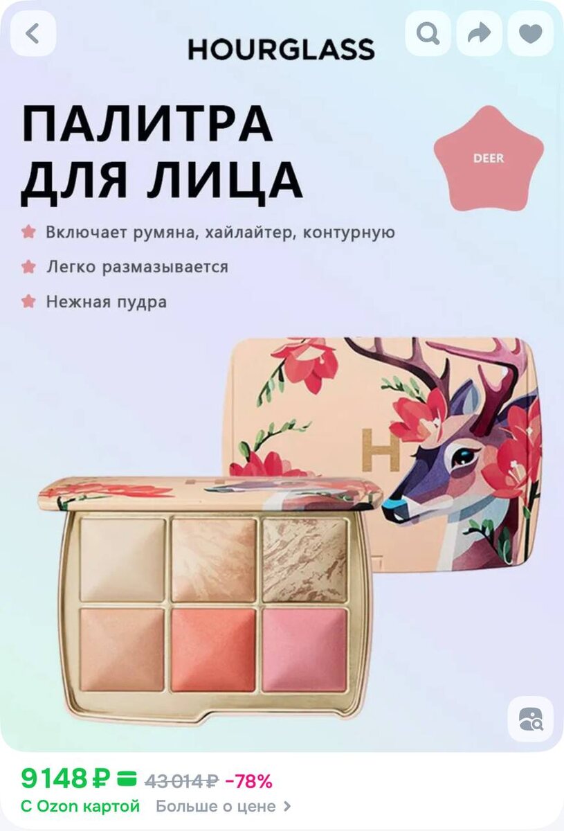 На OZON у проверенного продавца Preferred Cosmetics появилось в наличии 2 шикарные новые палетки Hourglass!🫓 Не могу выбрать, какую хочу больше, помогите 🤭 🔥 - олень 🐳 - лебедь