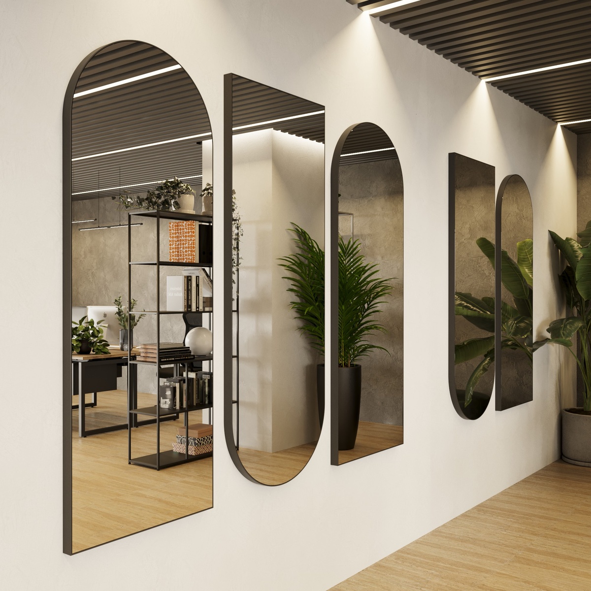 Сегодня хотим поделиться классными идеями, как сделать маленький офис уютным и просторным с помощью самого простого решения – зеркал. Да-да, тех самых, которые мы привыкли видеть только в ванных комнатах или прихожих. Особенно актуально это становится сейчас, когда компании все чаще переходят на компактные офисы. И знаете что? Маленькое помещение – совсем не приговор! Давайте разберемся, как правильно использовать магию отражений. Где разместить зеркала? Напротив окон Базовое правило работает безотказно. Естественный свет начинает “гулять" по всему помещению, создавая ощущение воздушности. Главное – позаботиться о том, чтобы окна были чистыми. На узких стенах Мы про те неприятные длинные стены, которые делают помещение похожим на коридор. Зеркало творит чудеса – визуально расширяет пространство и создает иллюзию дополнительного объема. В рабочих зонах Работается намного комфортнее, когда за спиной не глухая стена, а зеркальная поверхность. Кстати, психологический эффект потрясающий – ч