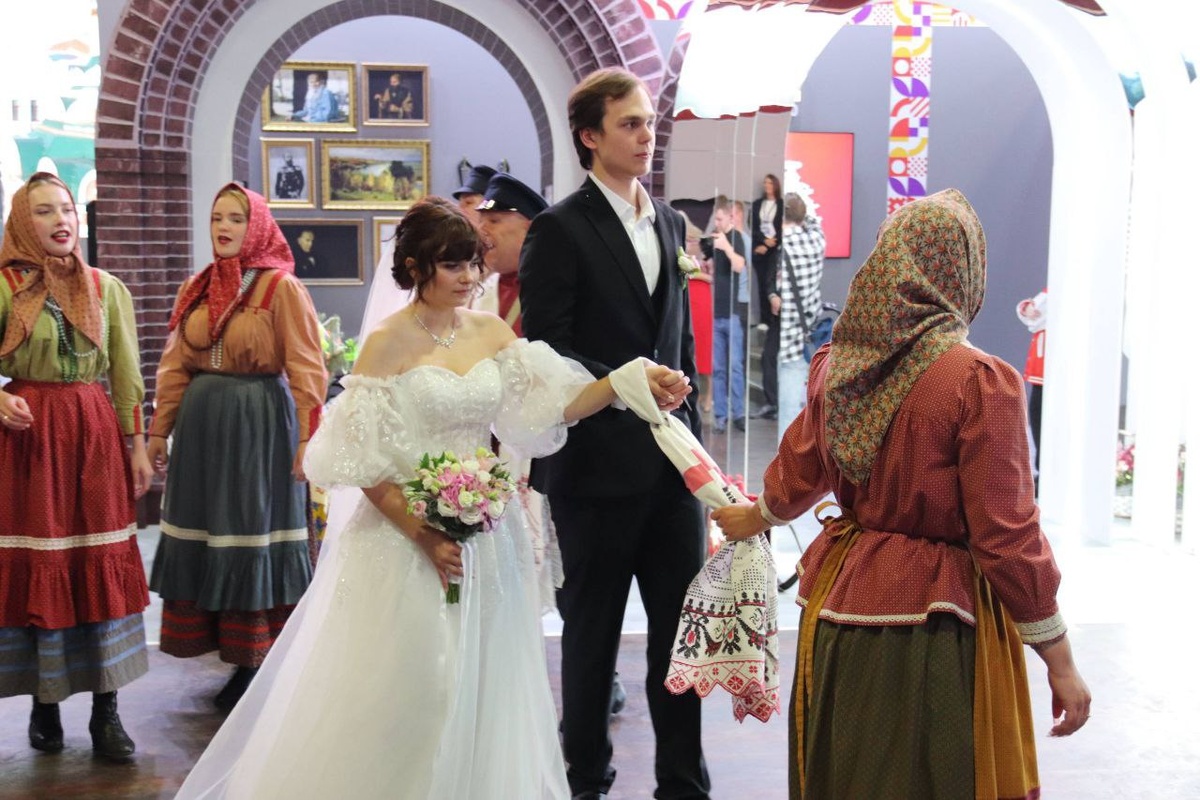 И большой любви вам в ленту этим вечером 🩷 Поздравляем с бракосочетанием студентов факультета истории и права Университета Льва Толстого Карину Калиничеву и Александра Фомина! И мы уверены, что свою свадьбу они запомнят на всю жизнь. Не только потому что приняли очень важное решение, а ещё и потому что стали участниками театрализованной демонстрации старинного свадебного обряда 💍 Бракосочетание в полном соответствии с народными традициями прошло в рамках Тульской недели на выставке «Регион 2030» в Национальном центре «Россия». От родного университета поздравила молодую пару проректор по воспитательной работе и социальной политике Светлана Будникова. Она пожелала ребятам счастья, успехов и долгих лет семейной жизни. Присоединяемся! Горько🥂 #УниверситетЛьваТолстого