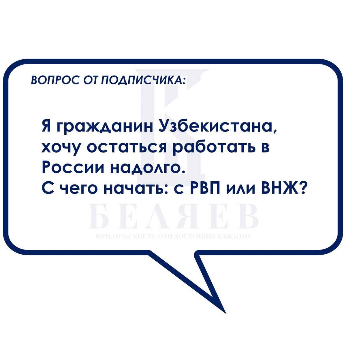Как получить РВП или ВНЖ в России? 🛂🇷🇺 Вопрос подписчика: «Я гражданин Узбекистана, хочу остаться работать в России надолго. С чего начать: с РВП или ВНЖ?» Ответ юриста: 🔹 1. Этап 1 — РВП Подайте заявление в МВД. Основания: квота, брак с гражданином РФ, рождение в РФ, служба в армии и др. Срок рассмотрения — до 4 месяцев. Действует 3 года. 🔹 2. Этап 2 — ВНЖ Можно подать через 8 месяцев после получения РВП. ВНЖ бессрочный, даёт право свободно работать и жить. Срок рассмотрения — до 4 месяцев. 🔹 3. Гражданство После 5 лет с ВНЖ можно подать на гражданство (есть льготные условия для некоторых категорий). 🔹 Пример из практики Гражданин Таджикистана получил РВП по браку с россиянкой. Через 8 месяцев подал на ВНЖ и уже через год получил бессрочный статус. 🔹 Советы юриста ✅ Соберите документы заранее: переводы паспортов, справки об отсутствии судимости. ✅ Сдайте экзамен по русскому языку, истории и праву. ✅ Если получили отказ — можно обжаловать в суде. Заключение РВП