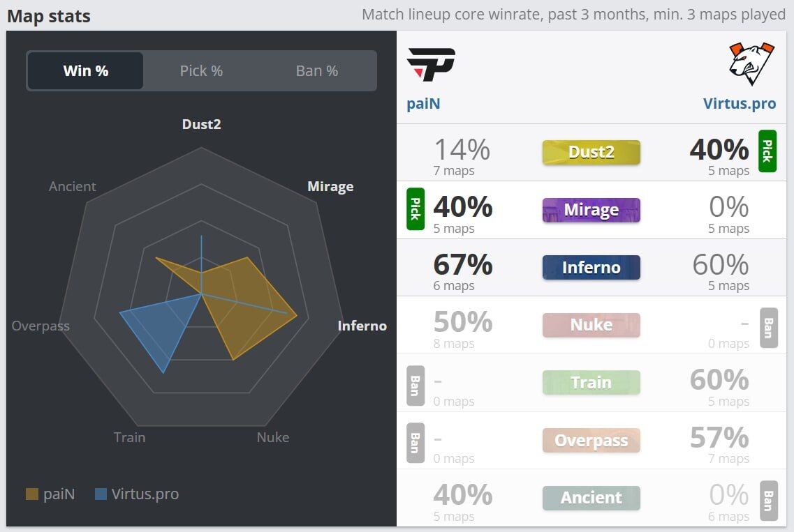 Определены карты для матча Virtus.pro vs paiN Gaming в ESL Pro League