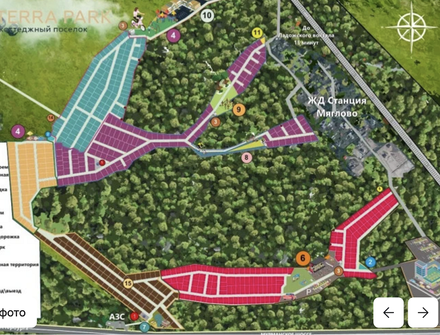 Участок под коттеджную застройку (статус – ИЖС) находится между Мурманским шоссе и веткой Заневский пост – Горы Октябрьской железной дороги, недалеко от станции «Мяглово». Лот состоит из 142 участков общей площадью 110,9 тыс. кв. м. У будущего коттеджного посёлка даже есть название - Terra Park. Стартовая цена – 615,4 млн рублей. Торги состоятся 30 октября, шаг аукциона – 2,5 млн рублей, сумма задатка – 40 млн рублей. В презентации показаны три смежных участка неправильной формы, примыкающие к станции «Мяглово» и к железной дороге; деревня Мяглово находится восточнее, в пяти километрах, и по другую сторону Мурманского шоссе. 142 надела – это одна из трех частей предполагаемой застройки. (Всего в массиве около 250 участков) Поселок Terra Park был выведен в продажу осенью 2024 года, какие-то наделы в нем, судя по отзывам, даже продавались. В качестве застройщика упомянута фирма «Уютный Дом» - какая именно, уточнить не удалось. (В Ленобласти несколько компаний с таким названием). В от