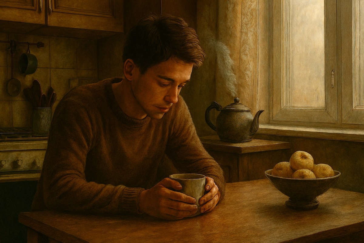 Иногда любовь уходит не с криком, а тихим щелчком дверцы шкафа. Не с драмой, а с чашкой, поставленной чуть громче обычного. Мы не всегда умеем говорить о ней — чаще просто теряем, молча, между делом. На кухне пахнет тобой. Чайник свистит, как будто скучает. Я снова спорю с собой — Что всё пройдёт, но сердце не знает. Ты оставила свет В коридоре, как будто вернёшься. А я — как старый поэт, Пишу тебе - авось засмеешься. О любви не кричат, О любви — просто молча теряют. И в глазах — не закат, А рассвет, где нас больше не знают. О любви — не в словах, А в том, как ты чашку поставишь. Если вдруг — не в мечтах, То хотя бы в стихе оставишь. На кухне — радио врёт, Что всё наладится, будет как прежде. А я — как будто пилот Без штурвала, без неба, без надежды. Ты ушла не всерьёз, Но всерьёз пустота окружила. И в этой тишине — вопрос: Ты меня хоть немного любила? 😞💔