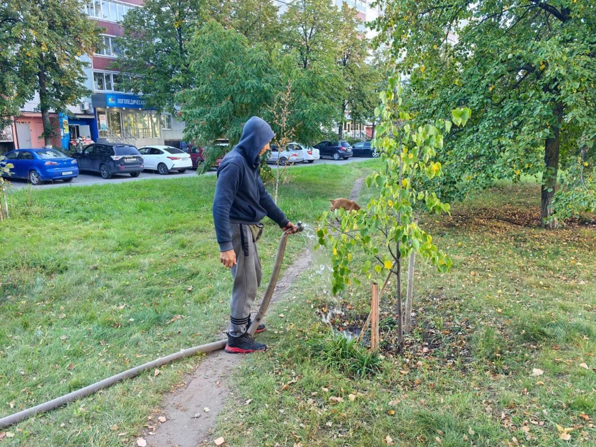 Сотрудники Городского центра по благоустройству и озеленению полили деревья на проспектах Ленинского Комсомола, Устинова, Ливанова и в сквере имени Антонова. Саженцы были посажены прошлой осенью и этой весной.