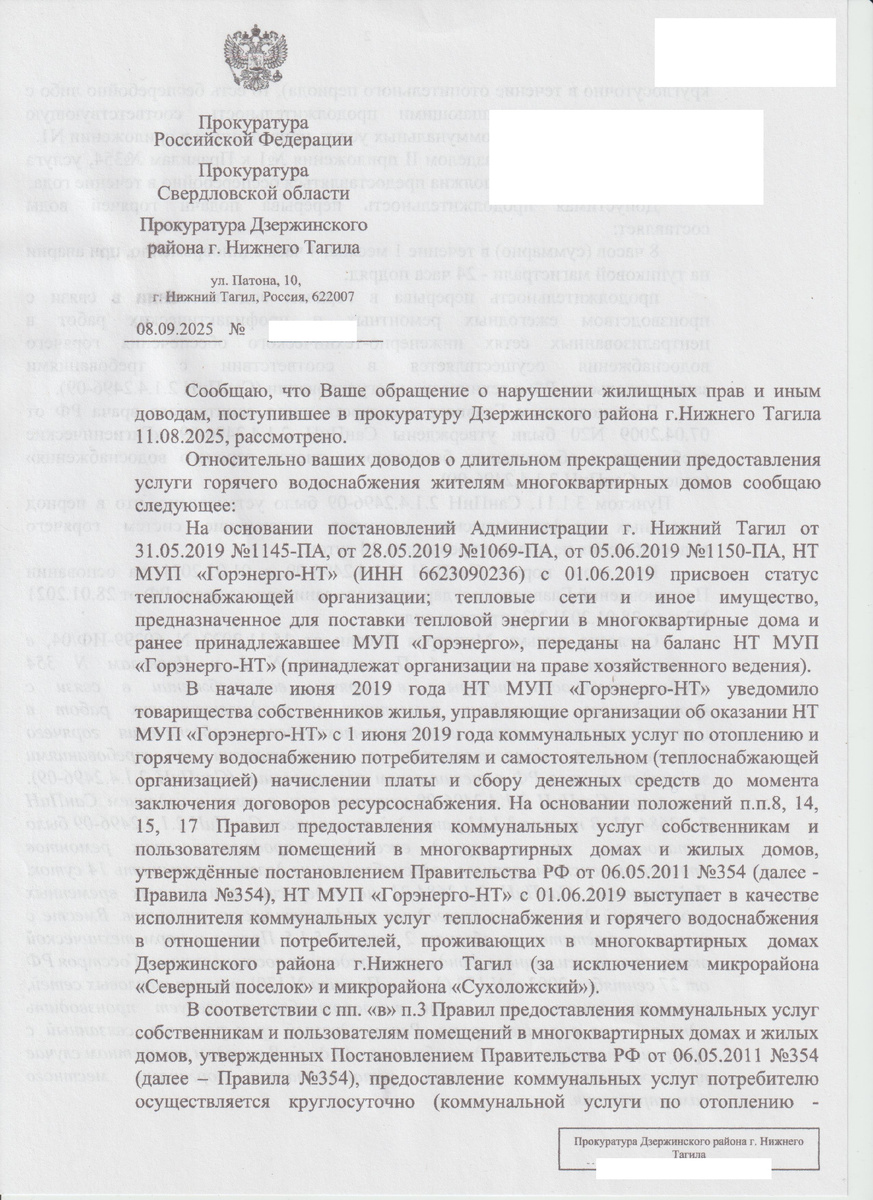 В связи с запущенностью коммунальной инфраструктуры в городе Нижний Тагил, и в частности в Дзержинском районе, хочется почему-то вспомнить крупную коммунальную аварию в декабре 2023 года в обозначенном районе, когда большинство многоквартирных домов осталось без отопления.Скоро уже будет 2 года.Что изменилось в подготовке к отопительному сезону 2025-26 годов? По заверениям администрации города отремонтировано 4 километра трубопроводов из 27.Ну, если худо - бедно магистральные трубопроводы ещё как-то меняются по разным программам, то внутридворовые сети не выдерживают никакой критики.В начале сентября 2025 года при подаче источника горячей воды в ряд многоквартирных домов произошёл выброс горячей воды на внутриквартальных линиях труб. При вскрытии коллектора, выявилось, что трубы полностью состоят из ржавчины.Коммунальщики заменили участок около 10 метров. Ну, а мы жители района, уже который год, сидим летом без горячей воды.Ладно, работающие могут позволить себе или помыться на работе