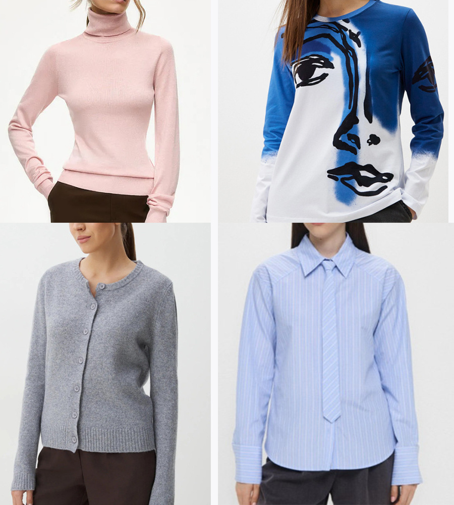 Осень пока радует теплом, но это не надолго, поэтому давайте утепляться стильно и красиво. А для этого у меня готова капсула в нежных оттенках с практичными более тёмными вещами, где это нужно. Гардероб этот по вашим просьбам собран для девушек летних цветотипов и показан со ссылками для вашего удобства. Рассчитан он на осеннее похолодание и начало зимы. Верхи Водолазка - очень удачный первый слой на холодное время года. Как единственный слой тоже можно носить, поскольку она свободного прилегания. Лонгслив - подобные принты актуальны, ну, и захотелось чуть разбавить базу. Кардиган - он в первых слоях не спроста.Их все еще носят вместо джемпера. а не как распашной второй слой. Под низ можно надеть футболку или лонгслив, но пуговицы все равно нужно застегнуть, при желании, верхнюю только расстегнуть. Рубашка. Очень мне нравится и сама по себе, и тем, что в комплекте с галстуком идет. Низы Брюки - красивый цвет, отличный фасон,модная тонкая полоска, которая визуально вытягивает. Юбка - ши