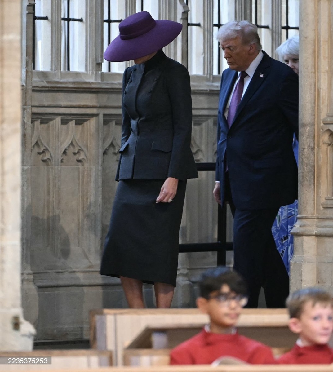 На мой взгляд. После осмотра подарков в замке, Трамп и Мелания отправились к месту упокоения Елизаветы Второй. Я не совсем поняла, почему не было цветов и венков. Хотя журналисты рапортуют о возложении венка, но ни одного фото. Трамп сказал у надгробной плиты: «Мы с Меланией всегда будем дорожить временем, проведенным вместе с королевой, и никогда не забудем дружбу, великую мудрость и прекрасное чувство юмора Ее Величества. Какой грандиозной и красивой дамой она была — не было никого похожего на нее!» Президент Дональд Трамп и первая леди Мелания Трамп осматривали в часовню Святого Георгия с клерком Шарлоттой Мэнли в Виндзорском замке. Плюс еще были песнопения. Никого из королевской семьи! Пошли стряхивать пыль с тиар? Кстати про тиары: со стенда с тиарами еще вчера пропала великолепная тиара принцессы Анны с аквамарином и елочными цветами. Похоже, ее мы и увидим сегодня. Выслушав песнопения, американская чета сфотографировалась с мальчиками из хора и уехала одеваться к банкету.