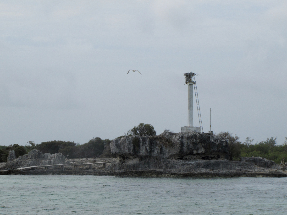 Одна из остановок на Кайо Ларго была на острове игуан. Не знаю как он в действительности называется и отдельный ли это остров или часть самого Кайо Ларго. На некоторых ресурсах это место называется Кайо Игуана. Можно примерно посмотреть расположение всех достопримечательностей на карте архипелага, но я не уверен в расположении именно этого места. Остров занимательный с одной стороны, но достаточно однообразный. И фотографий поэтому не очень много, но очень много фотографий одних и тех же игуан. Вид этот называется Кубинская циклура и они очень колоритные. Но обо всем по порядку. Сначала маяк, видный издалека. Судя по всему маяк давно не действует, так как на его верхушке какое-то огромное, но крайне неаккуратное гнездо. Первое животное, которое прибежало встречать корабль, была хутия — кубинский эндемик и вообще крайне забавное существо. Кубинская хутия - это зверек семейства щетинистых или ежовых крыс. Но она сильно больше чем крыса и в разы милее. Чем то похожа на нутрию или ондатру
