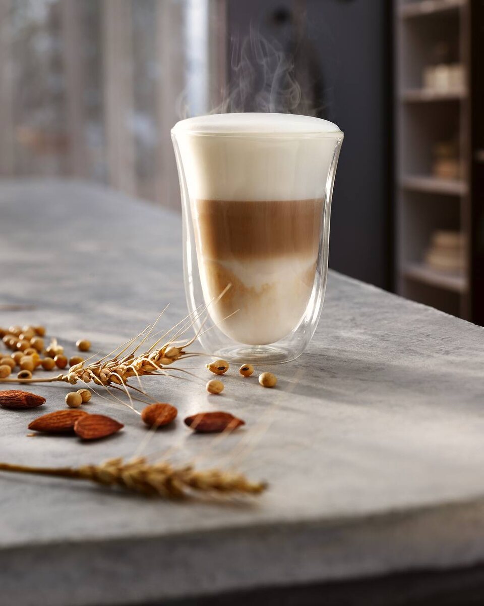 Кто придумал латте макиато? Напиток появился в Италии в середине XX века. Его придумали как более «мягкий» вариант кофе для детей и тех, кто не любил горечь эспрессо. ☕ Чем отличается от обычного латте? 🔹 Латте Основа — эспрессо, к которому добавляют много молока и немного молочной пены. Пропорции: ~1 часть эспрессо на 3 части молока. Структура однородная, кофе и молоко сразу смешиваются. 🔹 Латте макиато Основа — молоко, в которое вливают эспрессо. Получается красивый «слоёный» напиток: молоко снизу, кофе в середине, пена сверху. Вкус мягче, с акцентом на молочность и более деликатное раскрытие кофе. Оба напитка готовятся в кофемашинах De’Longhi одним касанием — а слои в макиато всегда выглядят эффектно в высоком стеклянном стакане.