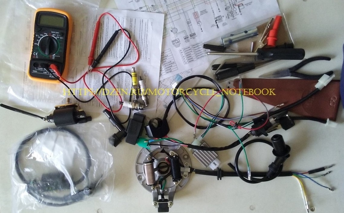 При неисправностях генератора, коммутатора или КЗ либо не будет искры, либо она будет слабой или несвоевременной, а при неисправности реле-регулятора напряжения будет недозарядка или перезарядка аккума, слабый свет либо, наоборот, всё будет перегорать. На 100% в большинстве случаев мультиметром не проверить, тем более в отрыве от мопеда / мотоцикла, но некоторые проблемы выявить можно.