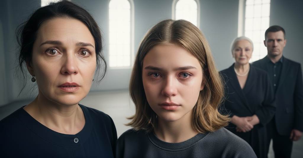 Лиза, шестнадцатилетняя дочь, стояла рядом с мамой. Услышав слова бабушки, она побледнела и схватила Татьяну за руку.